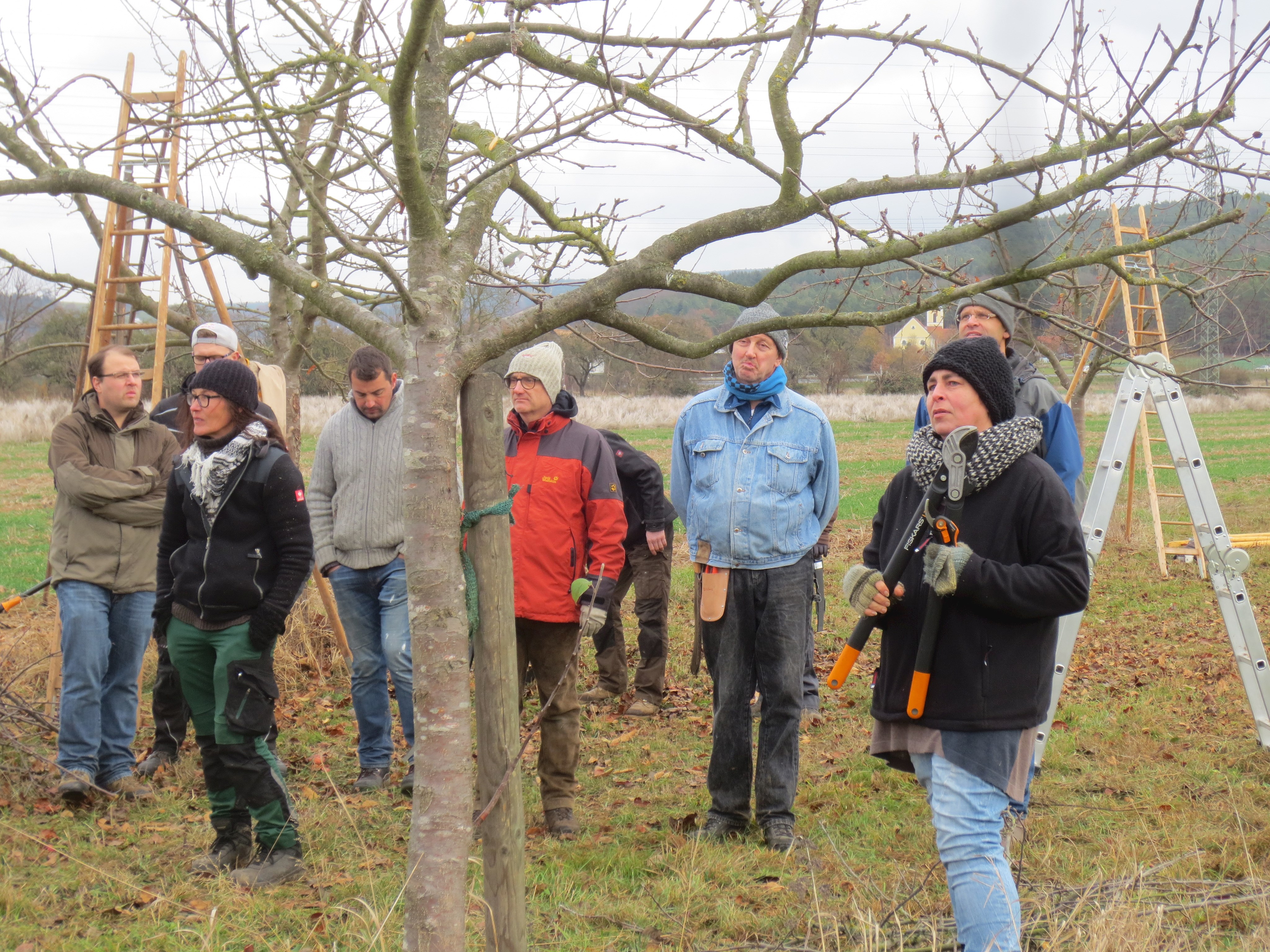 Innerhalb eines Jahres mit 6 Kurseinheiten lernten die Teilnehmer in Theorie und Praxis die notwendigen Kenntnisse zum Schnitt und zur Pflege von hochstämmigen Obstbäumen aller Altersklassen jeweils zur richtigen Jahreszeit kennen. Dabei wird der naturgemäße Obstbaumschnitt von Kursleiter Josef Weimer (Gärtnermeister und Gartenbaulehrerer) gelehrt. Der Ausbildungslehrgang endet mit einer Abschlussprüfung, bestehend aus einem schriftlichen und praktisch-mündlichen Teil.