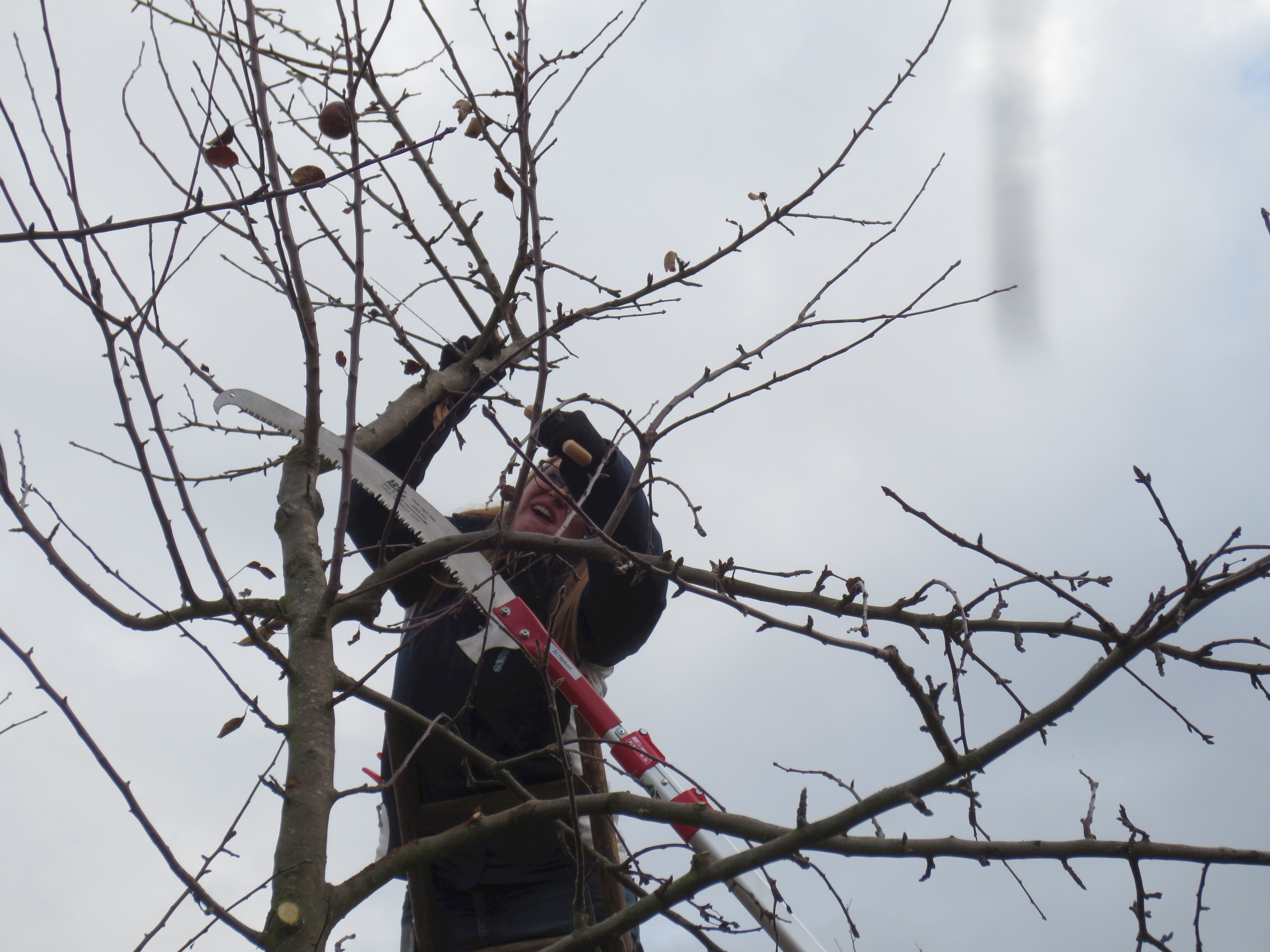 Zuerst mussten die Teilnehmer 45 Prüfungsfragen schriftlich beantworten, die von Edwin Lieb, Schatzmeister des Landschaftspflegeverbandes, korrigiert wurden. Im Anschluss setzten die Prüflinge ihr gelerntes Wissen am eigenen Baum in die Praxis um. Bevor jedoch der erste Schnitt gesetzt werden durfte, mussten die vorgesehenen Schnitte unter Berücksichtigung der Wachstumsgesetzte am Baum eingezeichnet werden. Erst nach Abnahme und mündlicher Beantwortung der Fragen von Herrn Weimer durften die Schnitte umgesetzt werden. Diese wurden selbstverständlich fachmännisch von Josef Weimer beurteilt.