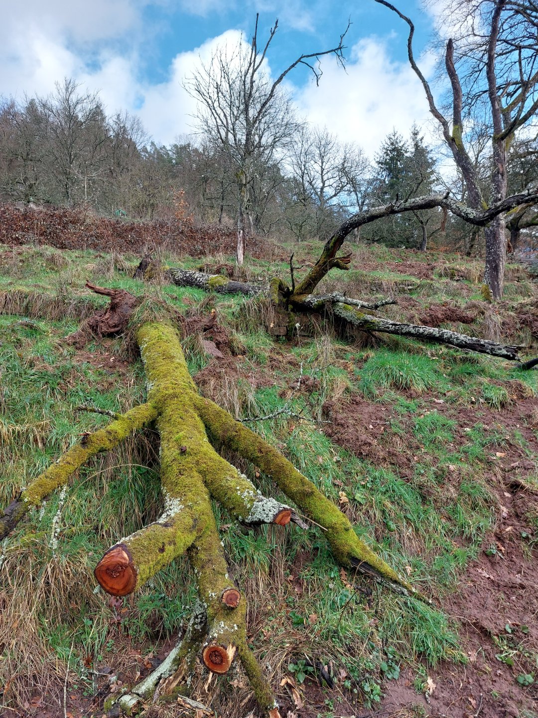 In den letzten Jahren sind die Flächen jedoch immer stärker zugewachsen: Die Brombeere hat sich in einigen Bereichen so massiv ausgebreitet, dass eine Flächennutzung kaum noch möglich scheint. Um der zunehmenden Verbuschung entgegenzuwirken und die attraktive Kulturlandschaft auf den ehemaligen terrassierten Weinbergslagen wieder herzustellen, führt der Landschaftspflegeverband Miltenberg e.V. aktuell umfassende Freistellungs- und Pflegemaßnahmen am Weilbachkopf durch. Zunächst werden Brombeer- und Gehölzaufwuchs zurückgeschnitten sowie umgefallene Bäume und heruntergefallenes Astmaterial von der Fläche entfernt. Die Arbeiten erfolgen dabei zum größten Teil in mühseliger Handarbeit, da ein Befahren der Terrassen in vielen Bereichen nicht möglich ist. Wo die Geländesituation es zulässt, kommt auch ein Mulchroboter zum Einsatz. Im nächsten Schritt werden die Obstbäume einem fachgerechten Obstbaumschnitt unterzogen, um sie noch lange als Lebensraum für Vögel, Fledermäuse und Insekten zu erhalten.